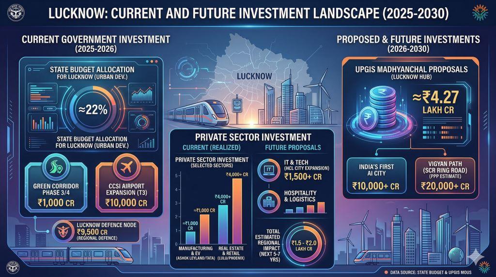 Lucknow’s investment landscape is currently defined by a massive surge in both government-led infrastructure and private sector capital. As the focal point of Uttar Pradesh's $1 trillion economy goal, the city has secured significant commitments through the UP Global Investors Summit (GIS) and state budgetary allocations for 2025-26.
