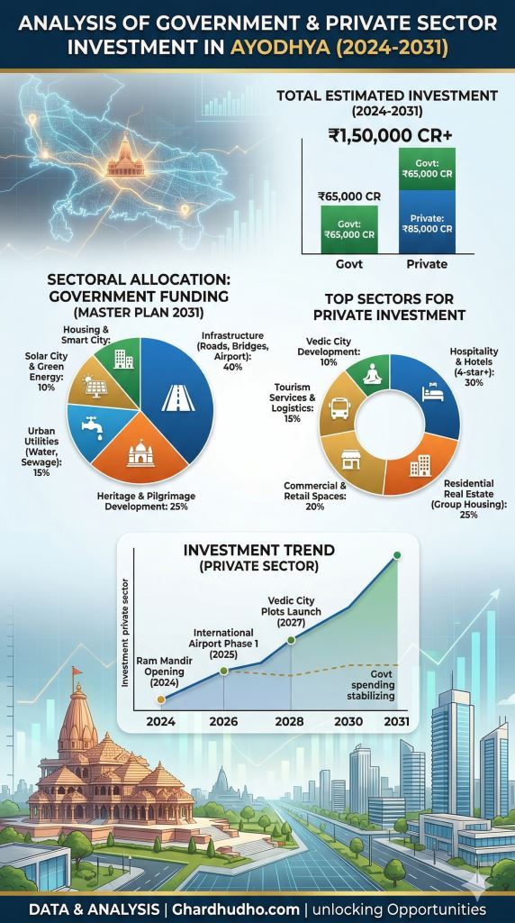 Private players have committed over Rs. 6000 crore in the initial wave, primarily across hospitality, real estate, and retail. Private developers are introducing "7-star" luxury and branded land concepts previously unseen in this region.