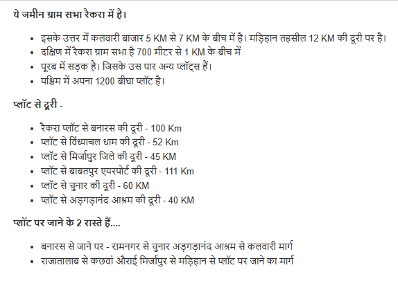 - Distance from Raikra Plot to Banaras - 100 Km