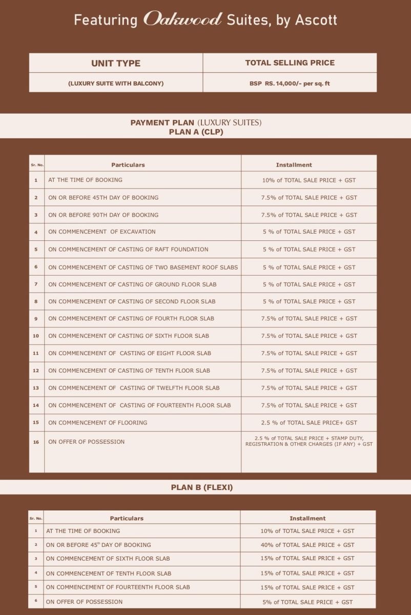 | Price & Payment Plan of Ekana Hotel Suites (Oakwood Suites) |