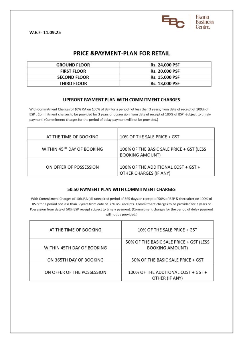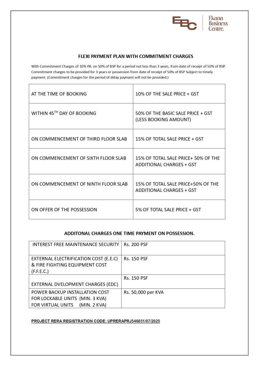 Investment starts from an affordable commercial entry range (approx. mid-budget segment for Lucknow commercial market).